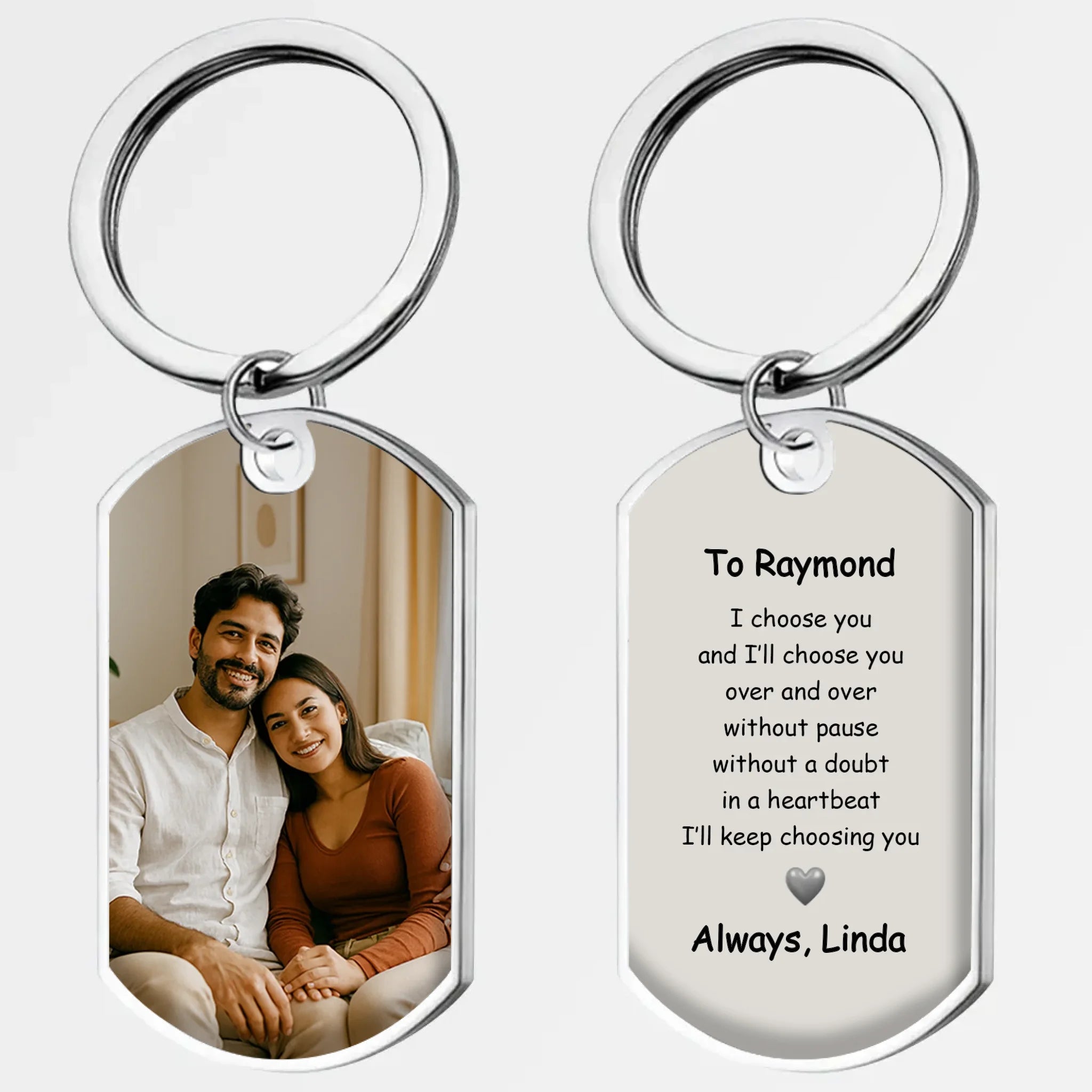 "I'll keep choosing you" Custom Photo Couple Keychain – Personalized Gift with Your Own Image & Names