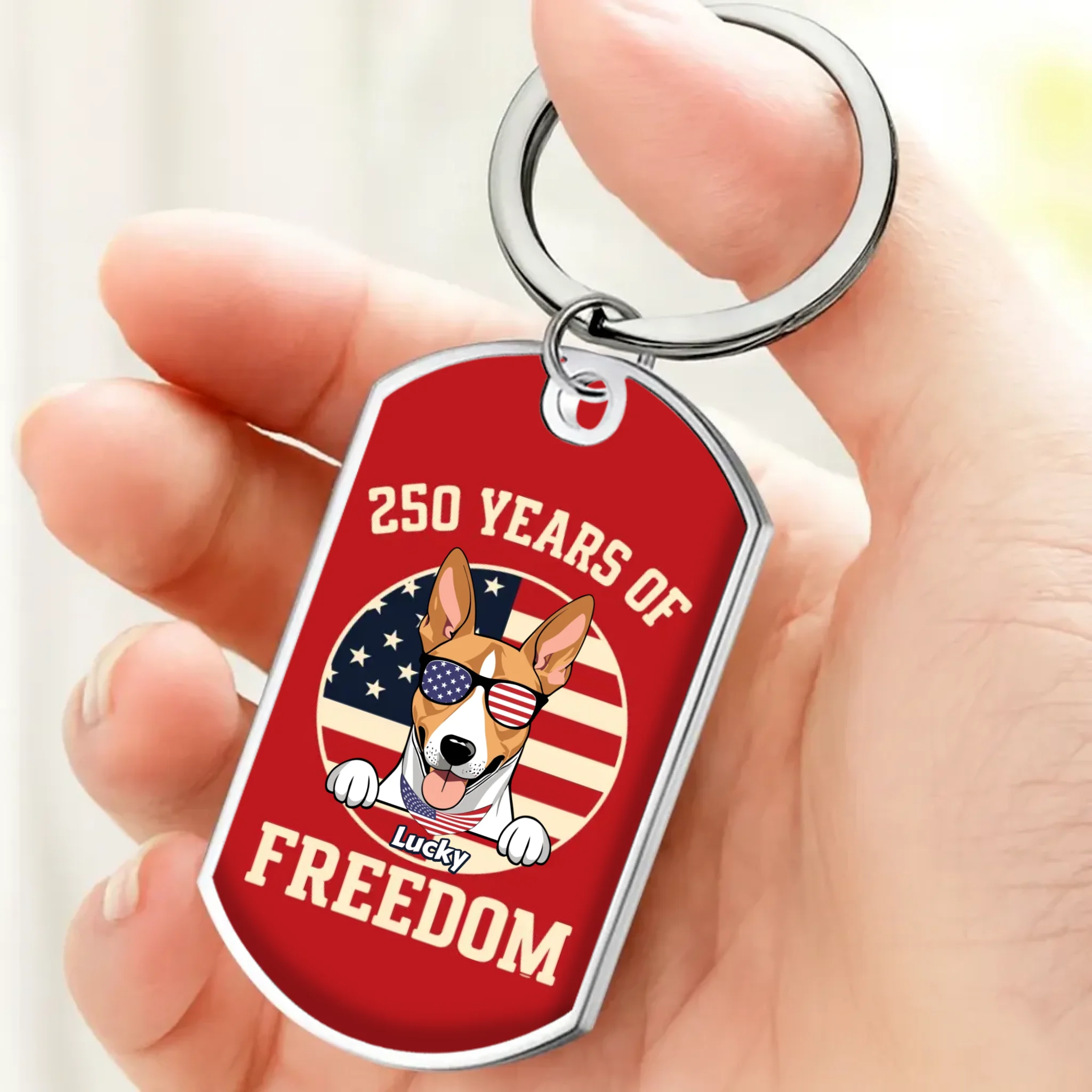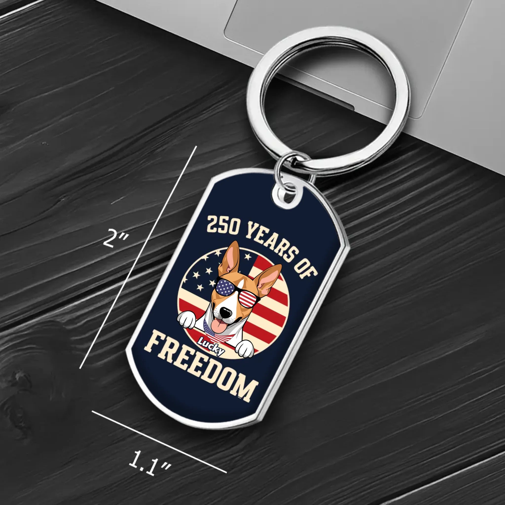 "250 Years of Freedom" Custom Dog Keychain – Personalized Patriotic Pet Tag – 89Prints