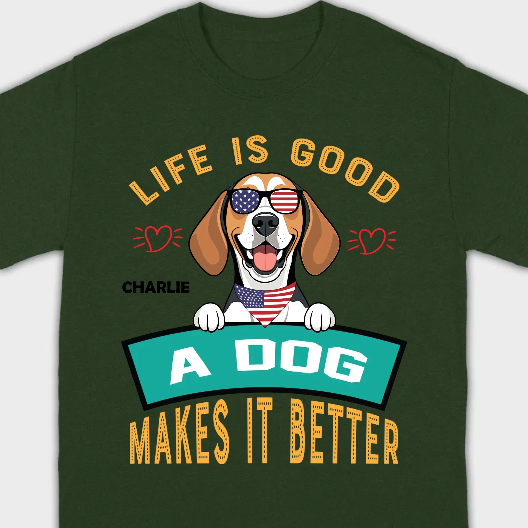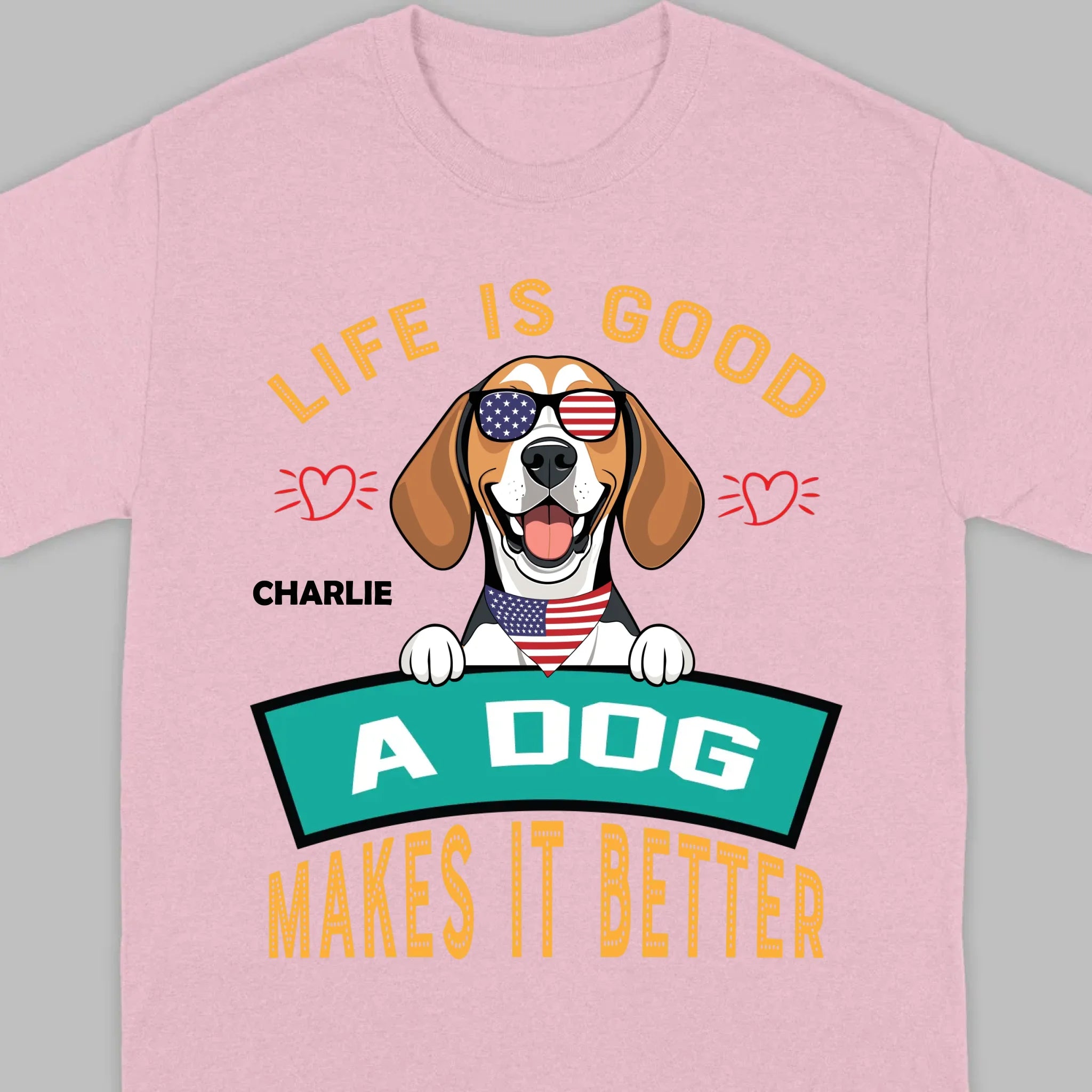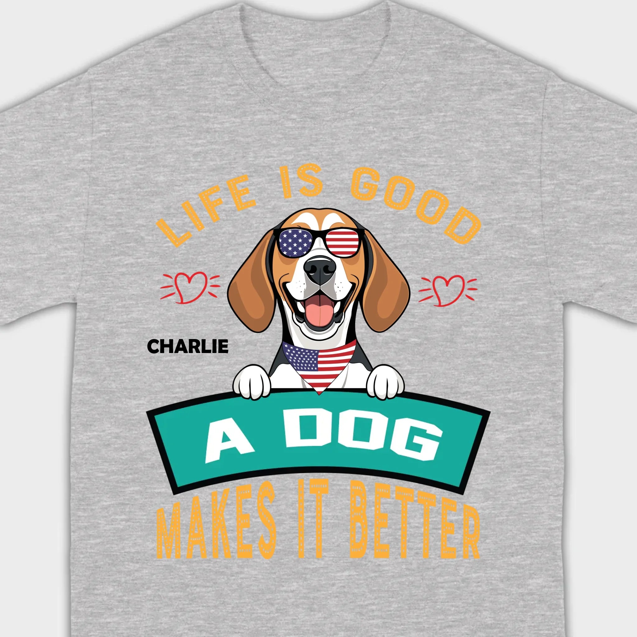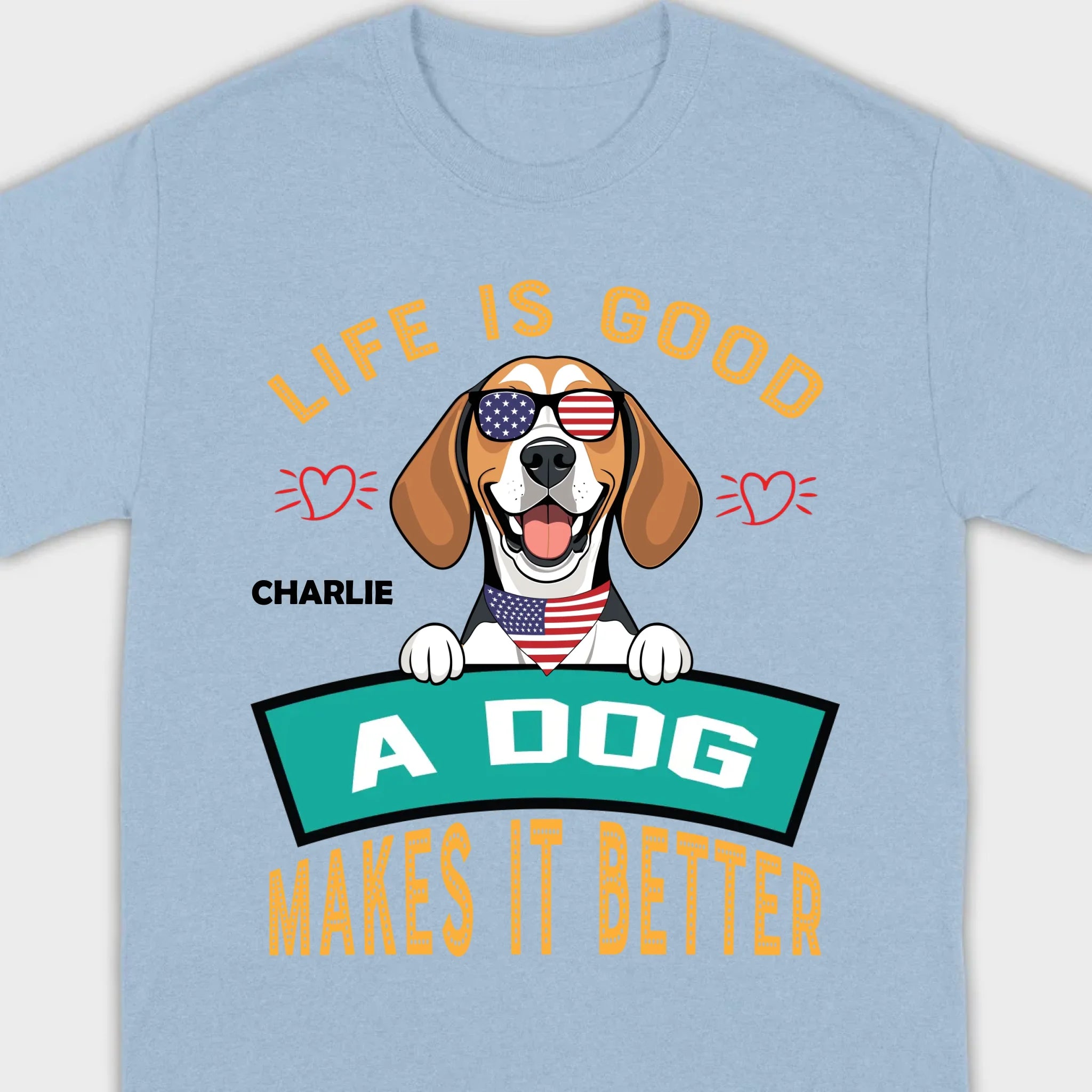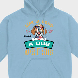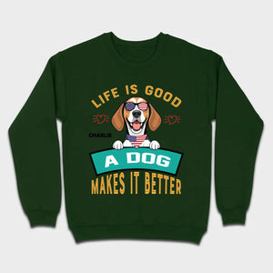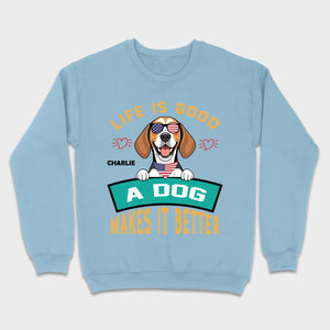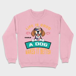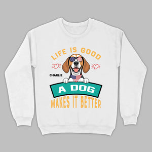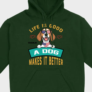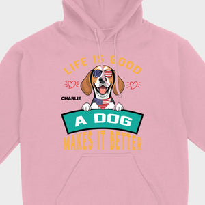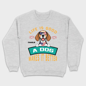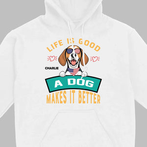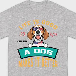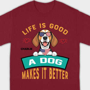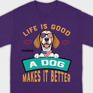 "Life Is Good, A Dog Makes It Better" Custom T-Shirts - Personalized Dog Name And Clipart - 89Prints